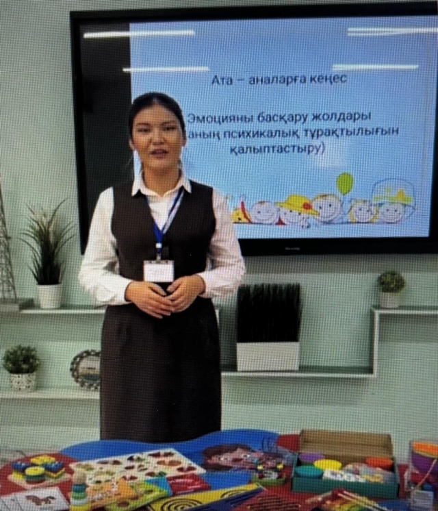 09.10.2025жылы бөбекжай психологы Мөлдір Аймұханқызы ата-аналарға «Эмоцияны басқару жолдары» баланың психикалық тұрақтылығын қалыптастыру онлайн кеңес берді. Кеңестің мақсаты жағымсыз эмоцияларды аңғарып, әртүрлі жағдаяттарды саналы түрде әрекет етуді үйрету.