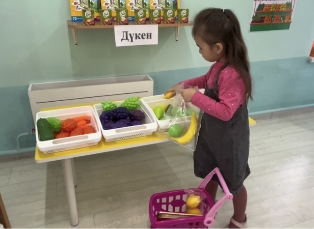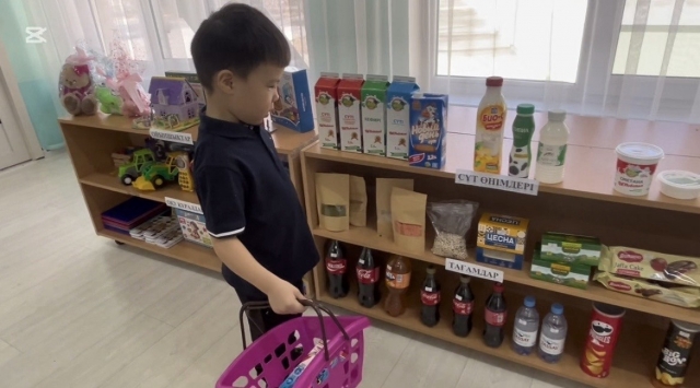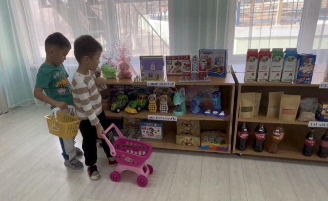 Бөбекжайымызда “ Мектеп жасына дейінгі балалар арасында қаржылық сауаттылық негіздерін қалыптастыру” жобасының жоспарына сәйкес №6”Еркемай” ересек тобында балалармен сюжеттік ойын: “Дүкен” ұйымдастырылды.