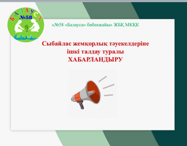 №58 "Балауса" бөбекжайында сыбайлас жемқорлық тәуекелдеріне ішкі талдау жүргізіледі.